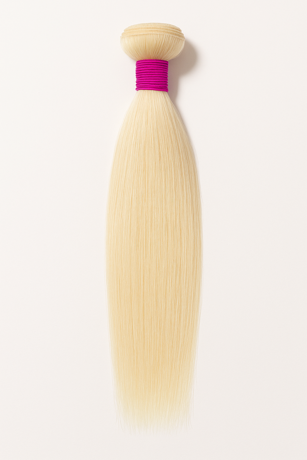 Our Blonde Electrostatic Straight is straight single drawn hair. This hair is normally worn straight to bone, or curled once heat is applied. The hair has a natural loose wave once washed due to the normal texture of the donor’s hair. The hair can easily become straightened once heat is applied or air dried for slight wavy texture. Our Virgin hair is easily dye-able and guaranteed to last up to 2 years or more with proper care.